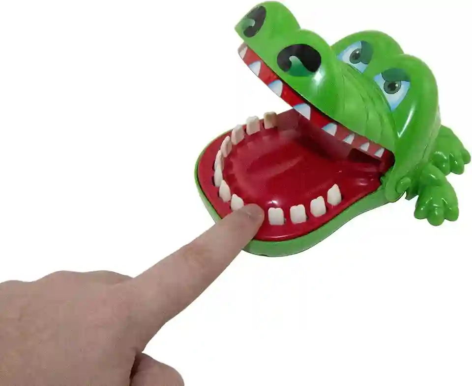 Crocodile Dentist Finger Game. The Crocodile Dentist Game is a fun and entertaining toy that brings laughter to kids and families. Each player presses a tooth, but one tooth triggers the surprise bite action.